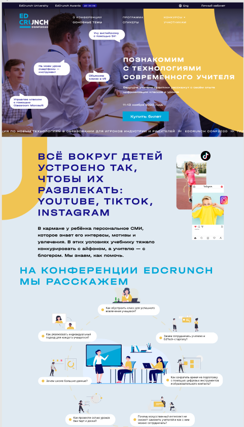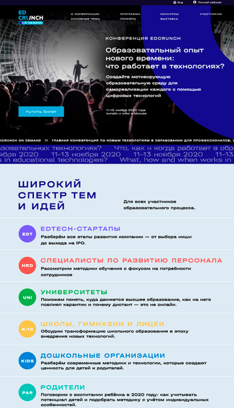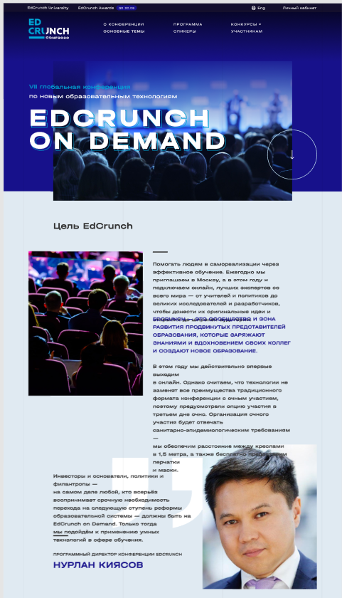 С проектом EdCrunch мы работали и раньше — но это всегда были какие-то небольшие, локальные задачи. В этот раз нас попросили написать полноценную платформу для проведения онлайн-конференции EdCrunch on Demand.