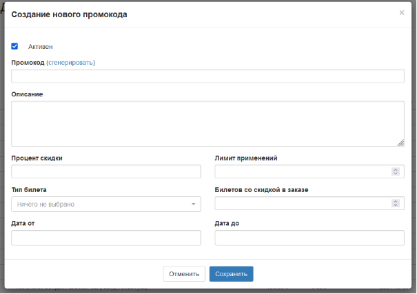 Для поддержки отдела продаж разработали гибкий механизм промокодов. Такой промокод мог подстраиваться под любые условия отдела продаж — с ограничением по времени, типу билета, лимитам применений и количеству билетов в заказе.