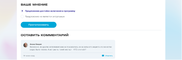 Сама карточка идеи позволяла пользователям не только проголосовать за отдельные идеи, но и обсудить идею в комментариях.