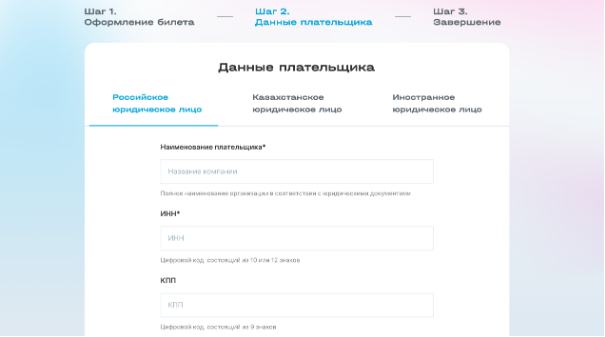 Конференция 2021 года предполагала максимум участников из России и Казахстана, поэтому для юрлиц этих стран мы сделали отдельные формы, максимально удобные для юридических лиц этих стран.